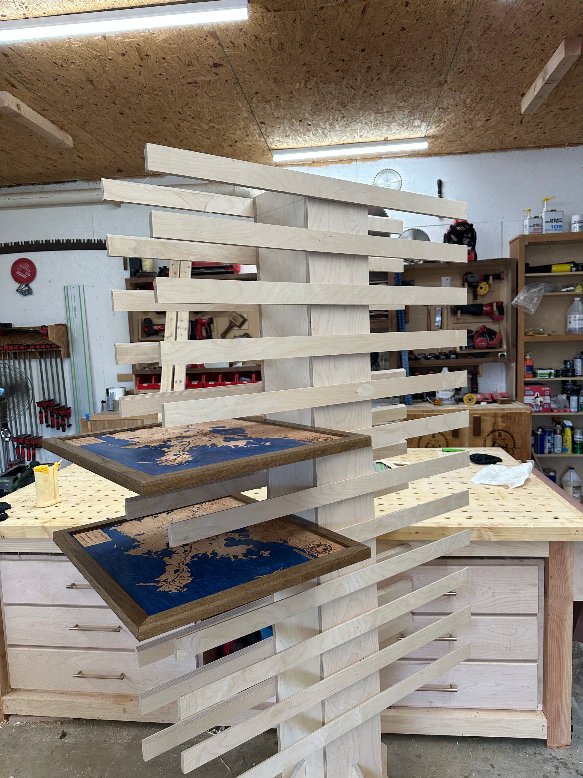 Bring the beauty of your favorite waterway into your home with a Framed Epoxy Lake Map from McElvy Custom Woodworks. Click âAdd to Cartâ to start designing your custom piece.